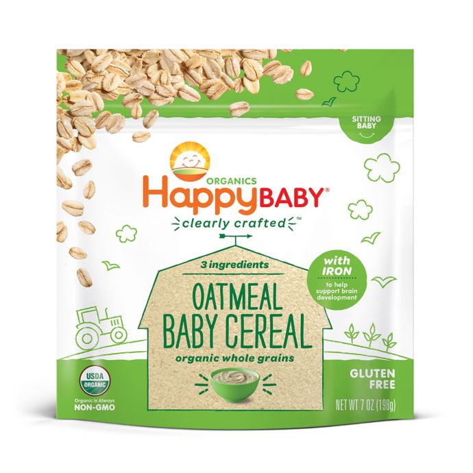 3 1 happy baby organic clearly crafted cereal whole grains oatmeal 7 ounce bags 6 count organic baby cereal in a resealable pouch with iron to support baby s brain development a great first food.