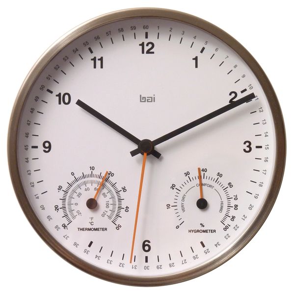 Our wall clocks come with a simple face design and a small thermometer at the bottom.