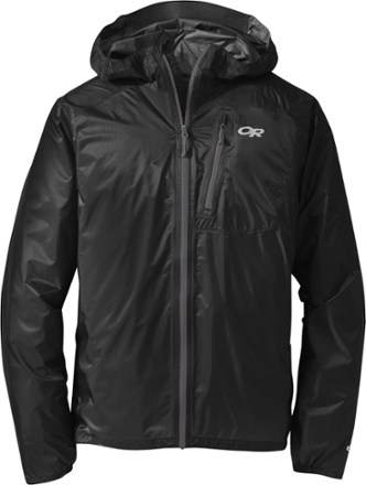 The outdoor research helium ii rain jacket weighing in at a scant 6 2 ounces for a men s medium is fully wind and waterproof decently well featured and fits the bill for both ultralight die hards and comfort ultralighters.